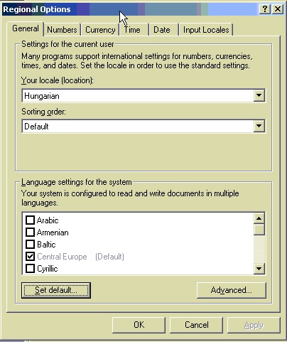 A hiba forrása általában windows Területi és nyelvi beállításaiban megadott, a magyartól eltérő alapértelmezett beállítás.