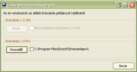 Az ön gépén több Eniszámla példány van feltelepítve. A frissítés